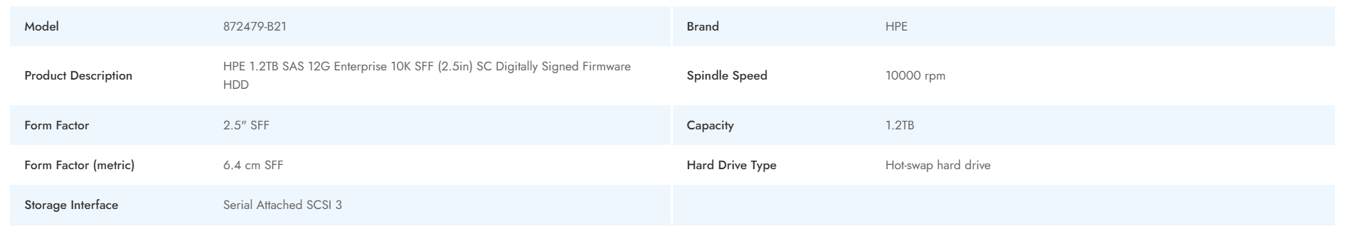 هارددیسک 872479-B21, HPE 1.2TB SAS 12G 10K SFF HDD, Enterprise/3yr Warranty/Digitally Signed